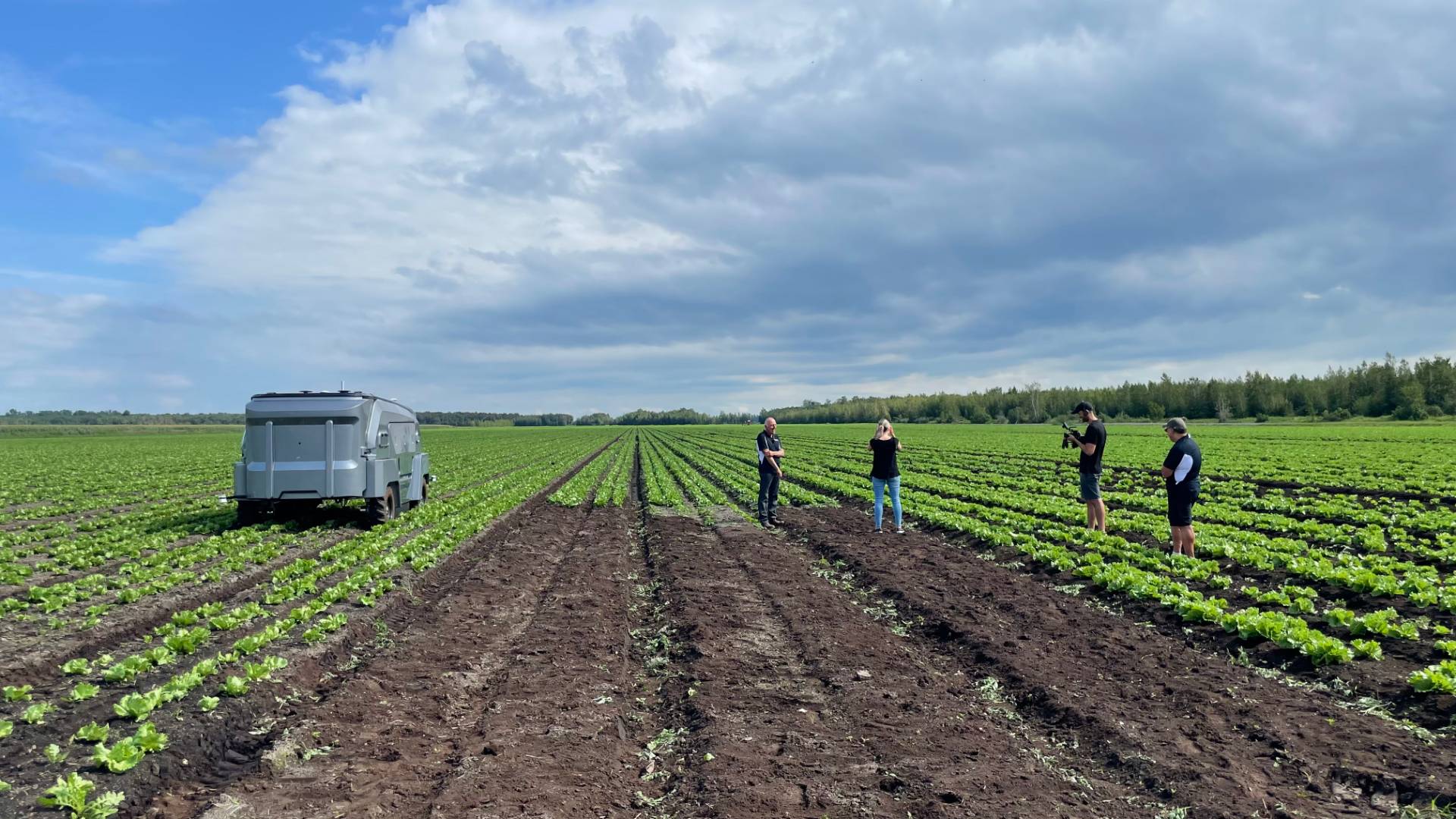 The robot uses three arms and a computer vision system to differentiate between crops and weeds before pulling the weeds out of the ground. Soon the robot will also have the capability to inform the farmer of info such as crop health, soil moisture and yield estimates.